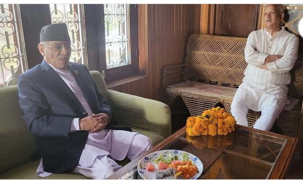 आज विहान एमाले का नेता सुदूरपश्चिम इन्चार्ज समेत रहेका भट्टको निवासमै उनीहरुबीच भेटवार्ता भएको हो। सुदुरपश्चिम विश्वविद्यालयको दिक्षान्त समारोहमा सहभागी हुन महेन्द्रनगर जाने क्रममा गोदावरी नगरपालिका–१ अत्तरियास्थित भट्टको निवासमै पुगेर प्रधानमन्त्रीले भेटवार्ता गरेका छन्।