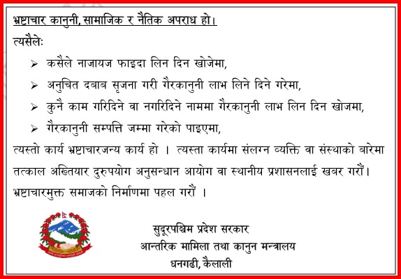 आज दिउँसो आंशिक वर्षा हुने छ भने पहाडी क्षेत्रका केही स्थानमा मेघगर्जन, चट्याङ्ङसहित हल्का वर्षा हुने सम्भावना छ। रातिको समयमा पहाडी जिल्लाहरूमा पहिरो जान सक्ने सम्भावना रहेकाले सतर्कता अपनाउन आग्रह गरिएको छ। यस्तै, बुधवार बिहानसम्म महाकाली नदीको जल सतह सामान्य रहेको महाकाली बेसिन कार्यालय अत्तरियाका प्रमुख शाहले बताए।