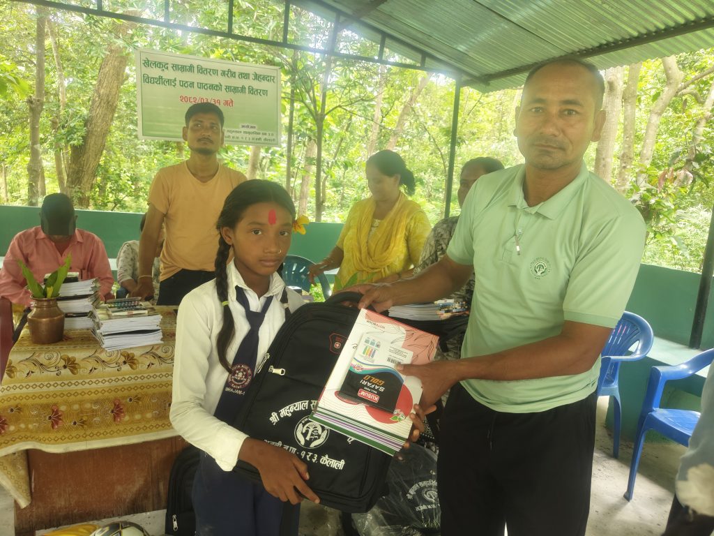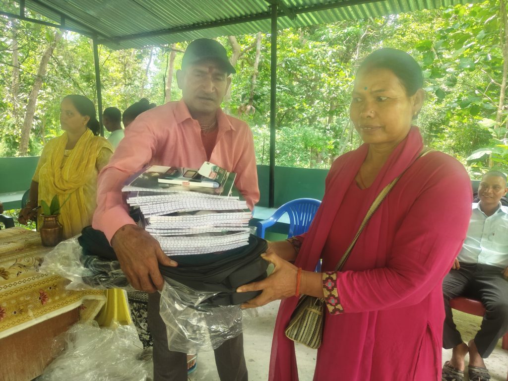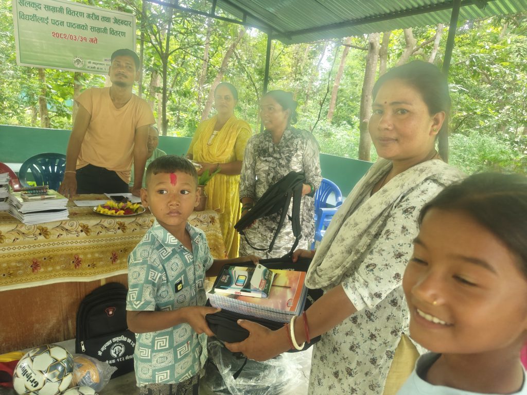 सामुदायिक वनको क्षेत्र अधिकार भित्र पर्ने वडा नम्बर १ र ३ भित्र रहेका सामुदायिक बिधालयका आधारभूत तहका एक बिधालय बाट ५ जाना गरि महुन्याल माध्यमिक बिधालय , केदार नाथ आधारभूत बिधालय , बालबिधा आधारभूत बिधालय गरी १५ जना बिद्यार्थी लाइ सामाग्री वितरण गरिएको छ । त्यस्तै गरी भजनी कल्व भजनी र जाल्पा कल्व भज्नी लाई खेलकुद सामाग्री वितरण समेत गरिएको हो।